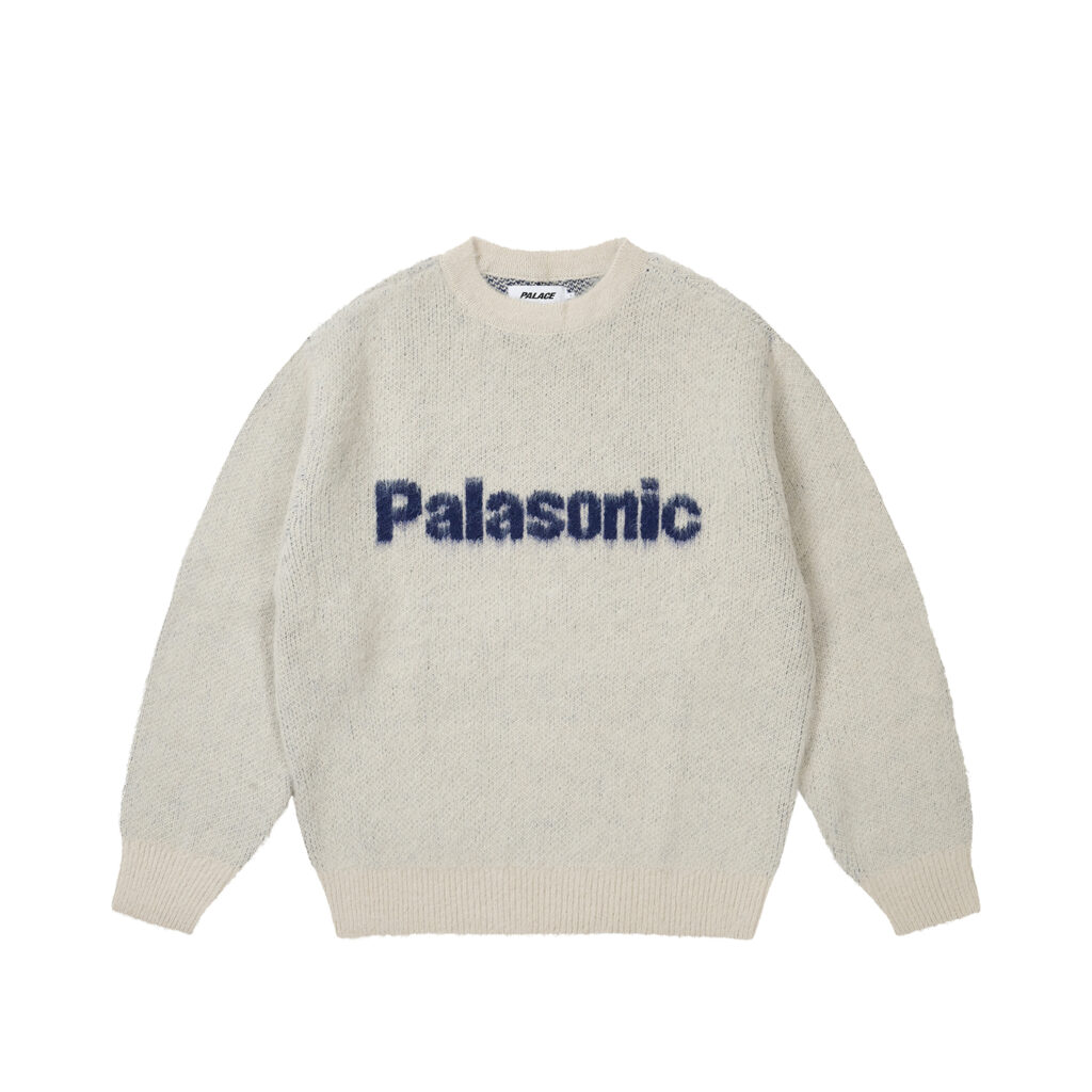 今週は、あの有名な日本企業のフォントをサンプリングした”Palasonic”ロゴを使ったニットトップスやキャップ、首元にリフレクター素材を搭載したインドアファンネルフリースジャケット、アイコニックなTri-Fergグラフィックを落とし込んだクルーネックスウェット、ディストレスト加工を施したデニムなどが展開される。