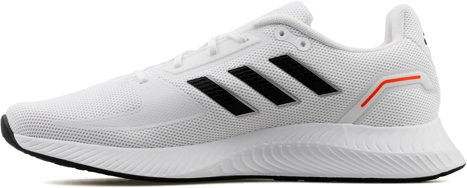 コアランナー / Runfalcon 2.0:軽量の重量を損なわないクールな3ストライププリントデザインで、通気性と快適さを向上させるためのサンドイッチメッシュに加えて、サイド補強材、高レベルのデザインEVAミッドソール、フルレングスラバーアウトソール。これらの機能はすべて一緒になって、完全なエントリー価格のランニングシューズを作成しています。