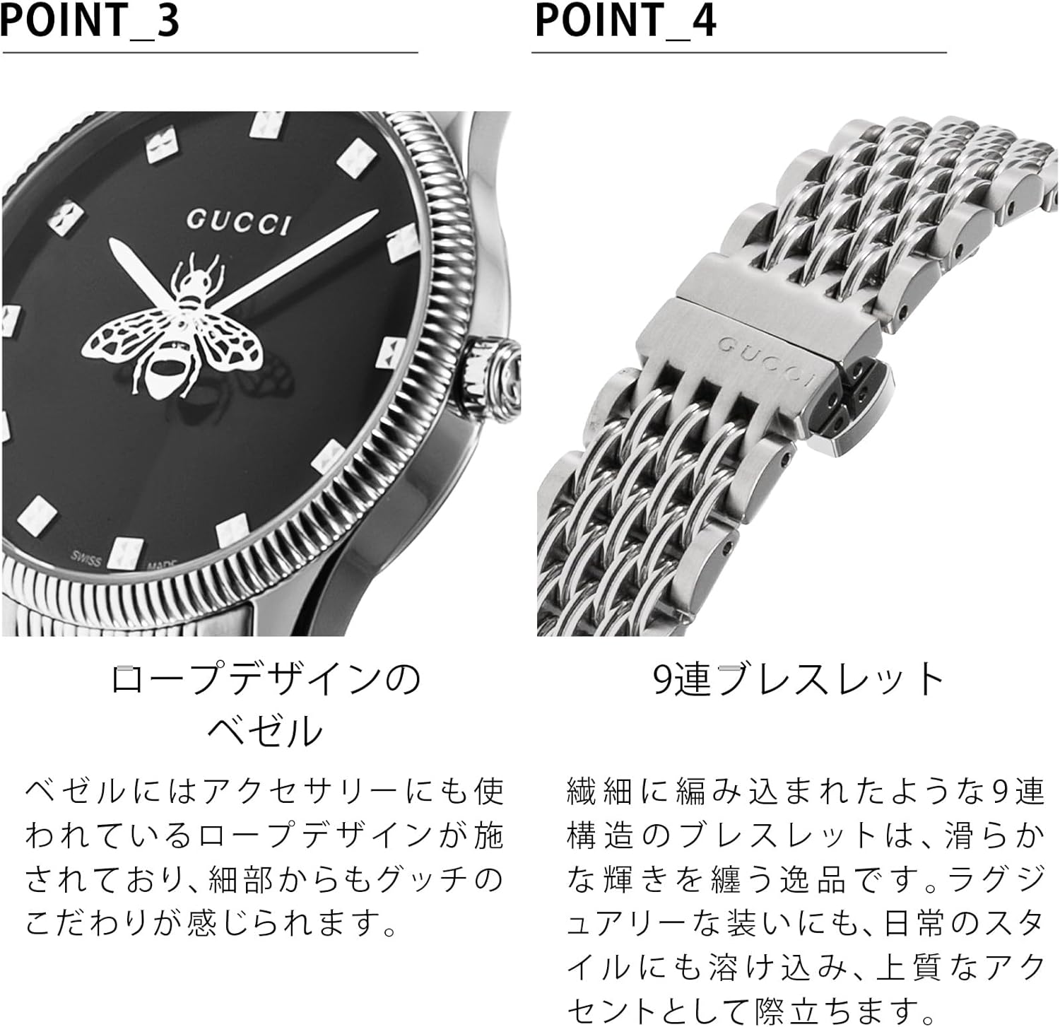 [グッチ]腕時計 Gタイムレス クォーツ ブラック文字盤 日常生活防水 サファイアクリスタル YA1265020 レディース