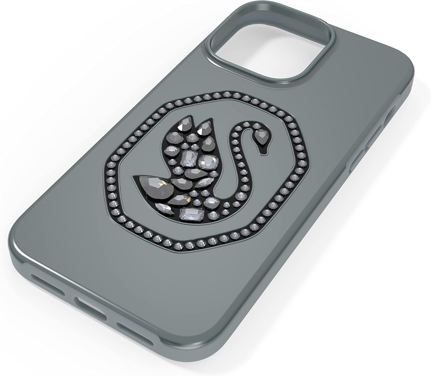 スワロフスキー シグナム スマホケース iPhone 14 Pro Max用 シルバー クリスタル ブラック 背景 スワロフスキー スワン モチーフ スワロフスキー シグナム コレクションの一部