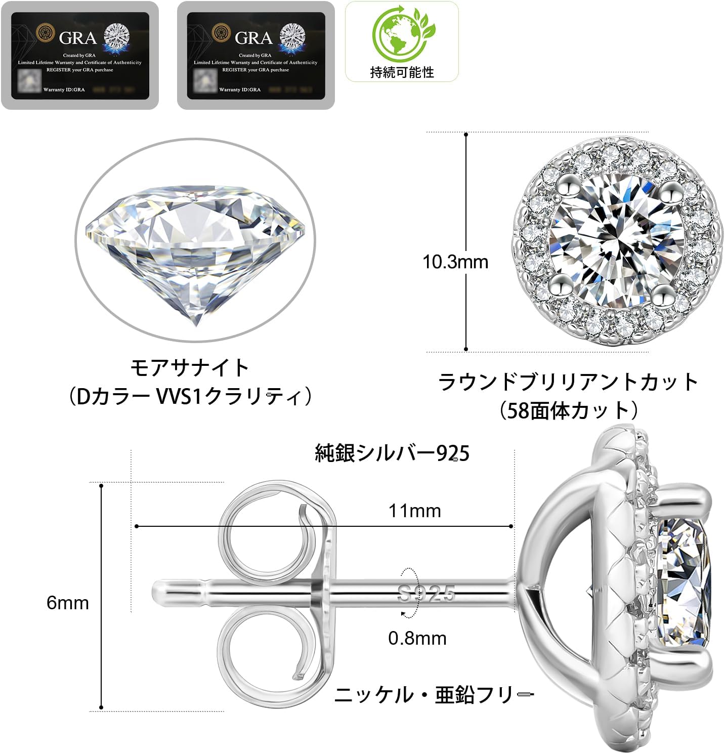 ダイヤモンド イヤリング モアッサナイト ダイヤモンド スタッド イヤリング モアッサナイト イヤリング メンズ レディース ハロー イヤリング スターリングシルバー 低刺激