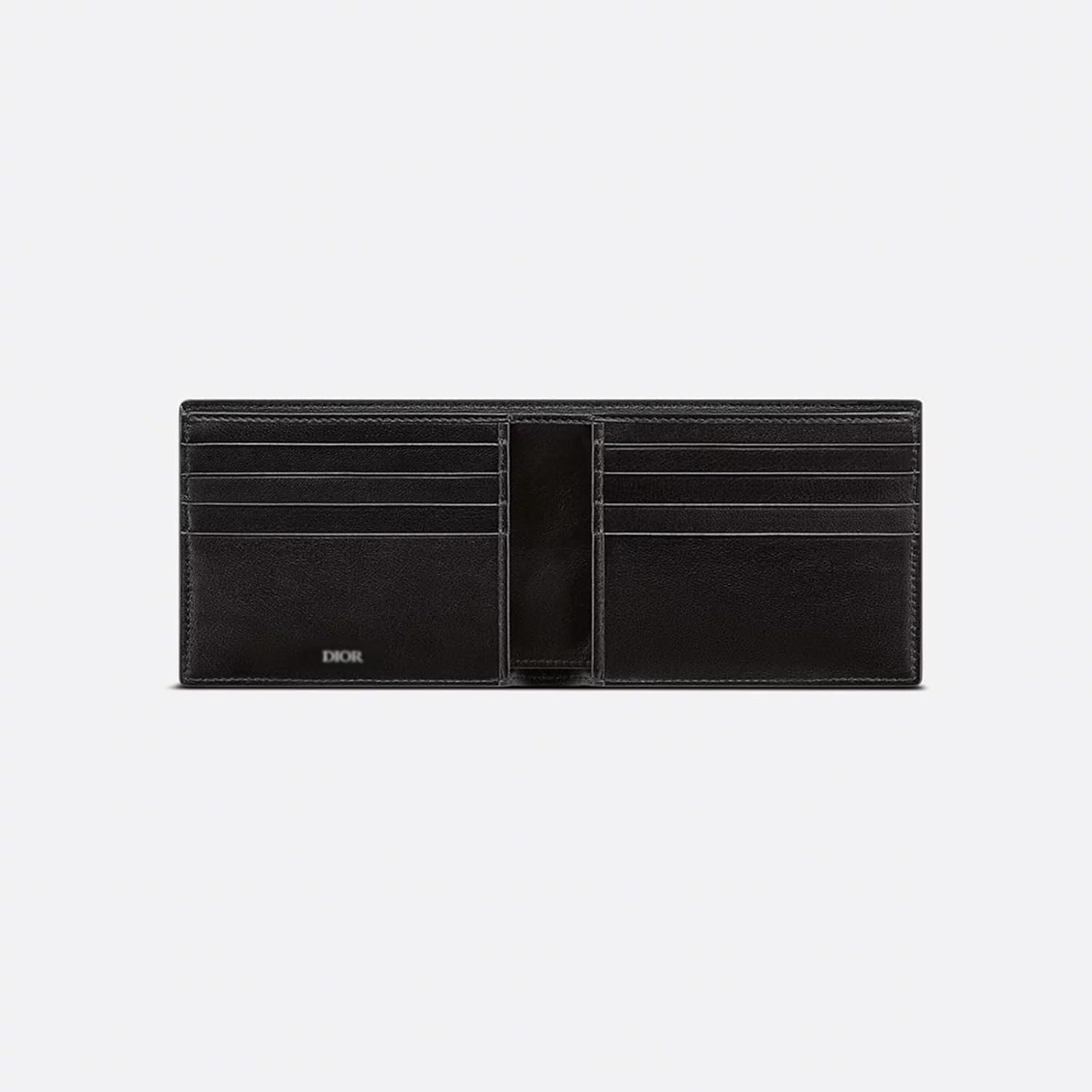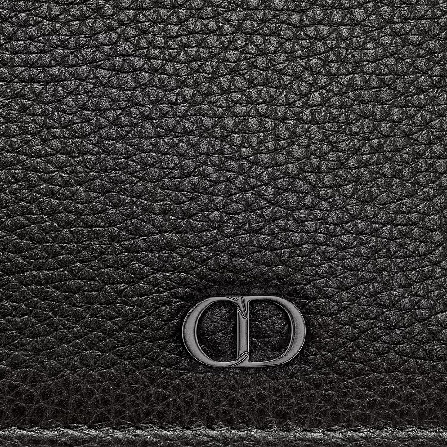 コンパクトなスタイルで洗練された魅力に仕上げた縦型二つ折り財布です。フロントに CD アイコンのサインが入ったブラック グレイン カーフスキン。 内側には札入れ 2 つ、レシート用スリップ ポケット 2 つ、カード スロット 4 つ、スナップ留めのマチ付きコイン コンパートメント 1 つが付いています。ポケットやカバンにすっきり収まる二つ折り財布