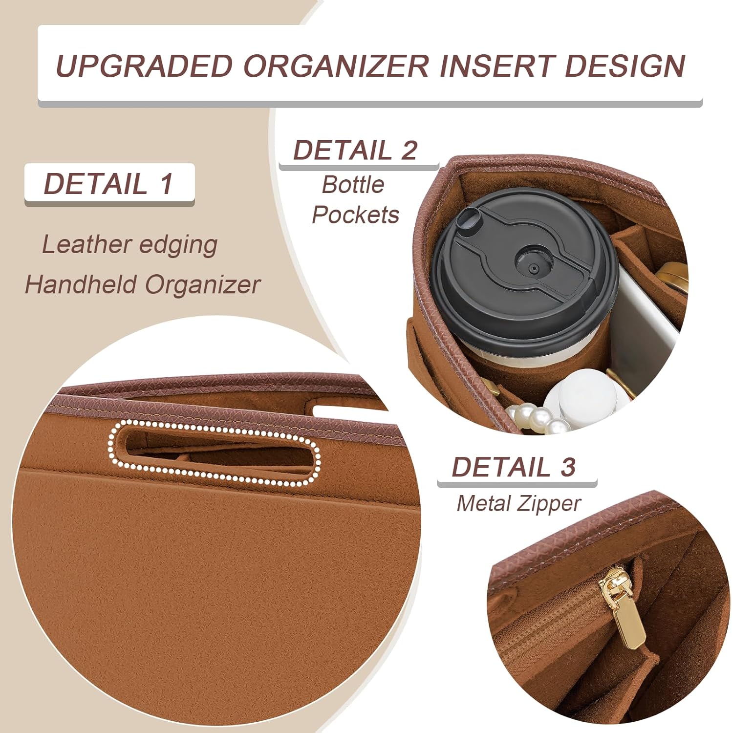 プレミアム品質のフェルト生地とPUレザー:収納バッグは高品質のフェルト素材で作られており、頑丈で耐久性があり、柔らかく弾力性があります。収納袋の縁にはレザーの色に合わせたPU素材を使用しています。この製品は耐久性があり、ハンドバッグ内のアイテムを効果的に保護します。