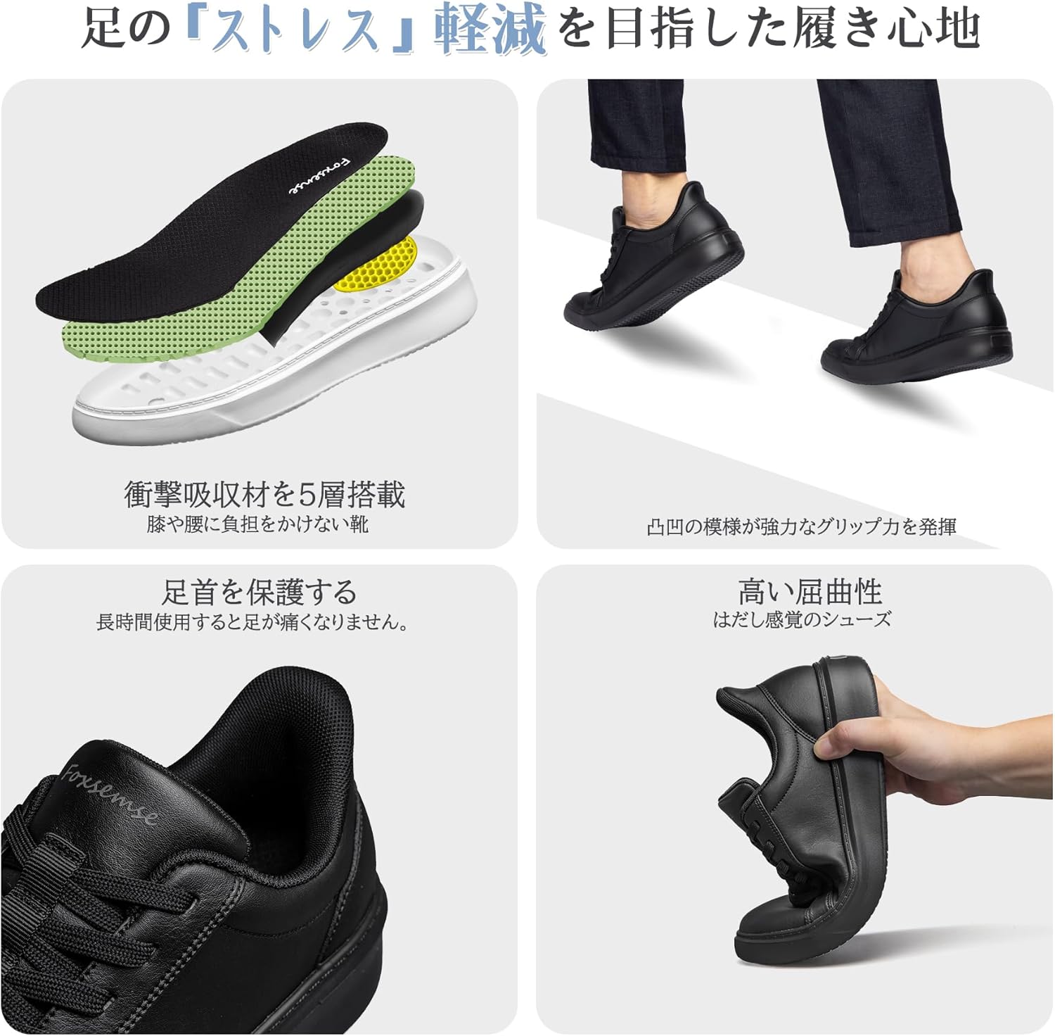 [フォクスセンス] スニーカー 【立ったままスッと履ける 理学療法士推薦】 ウォーキングシューズ レースアップ カジュアル ビジネスシューズ メンズ レディース 防水 世界一快適 通勤 歩きやすい 立ち仕事