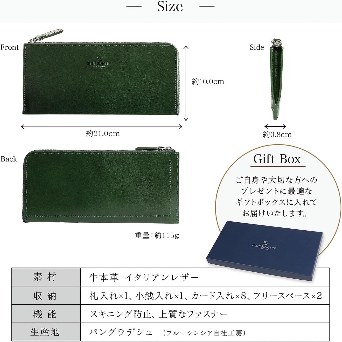 ブルーシンシアILW1ウォレット、本物のイタリア革、メンズ本物の革、長財布、ウルトラ薄い0.3インチ(0.8 cm)、RFIDスキミング予防、L字型の丸いジッパー、YKKジッパー、8枚のカード、ギフトボックス