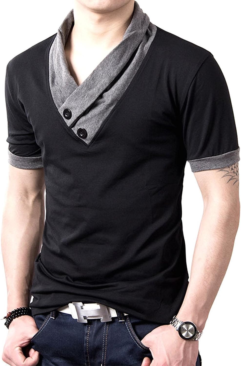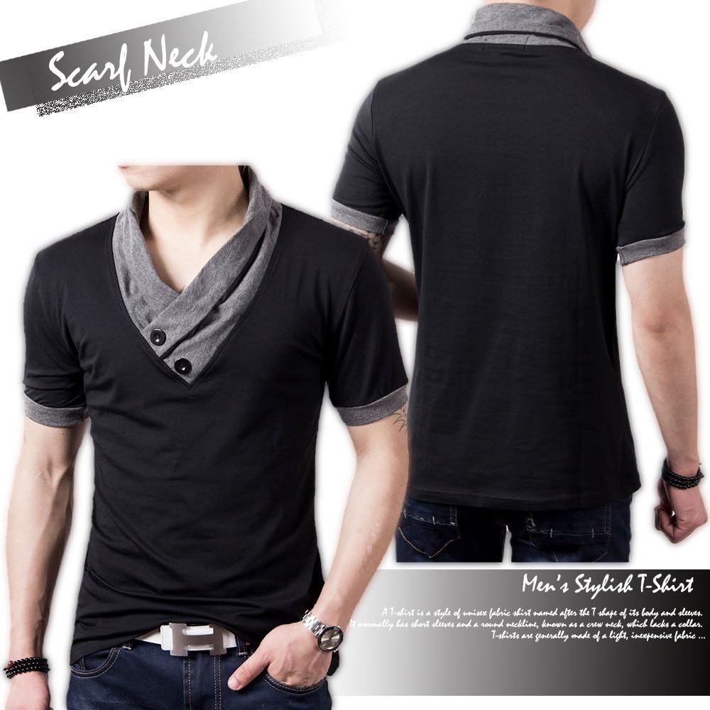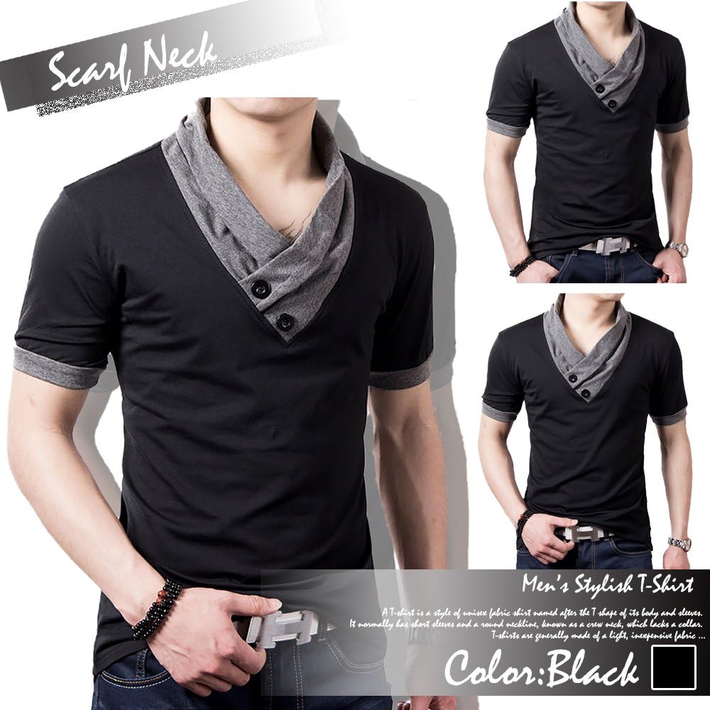 [メイクツービー]スリムVネック Tシャツ 長袖 カットソー ツートンカラー 綿100% スカーフ風 カジュアルシャツ MF01