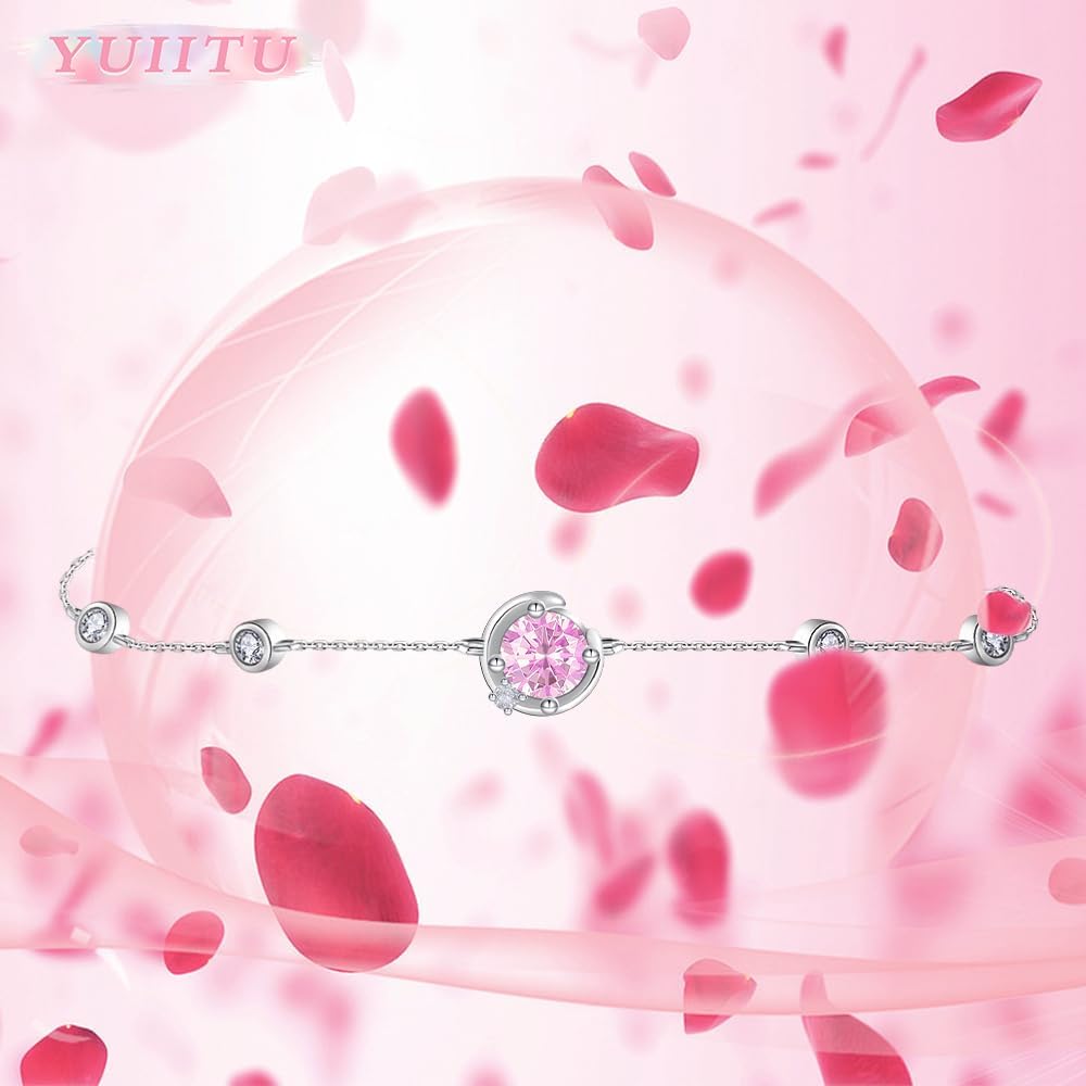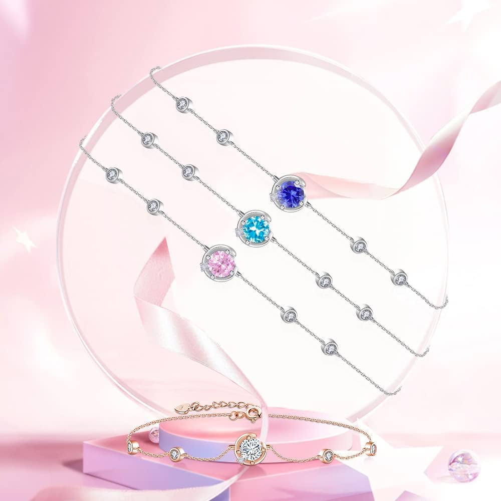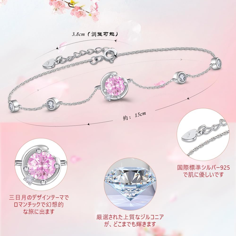レディース ブレスレット 高品質 ジルコニア 誕生石「月の姫」 ブレスレット 18Kコーティング 三日月 アレルギーフリー シルバー ブレスレット レディース 大人 アクセサリー 長さ調節可能