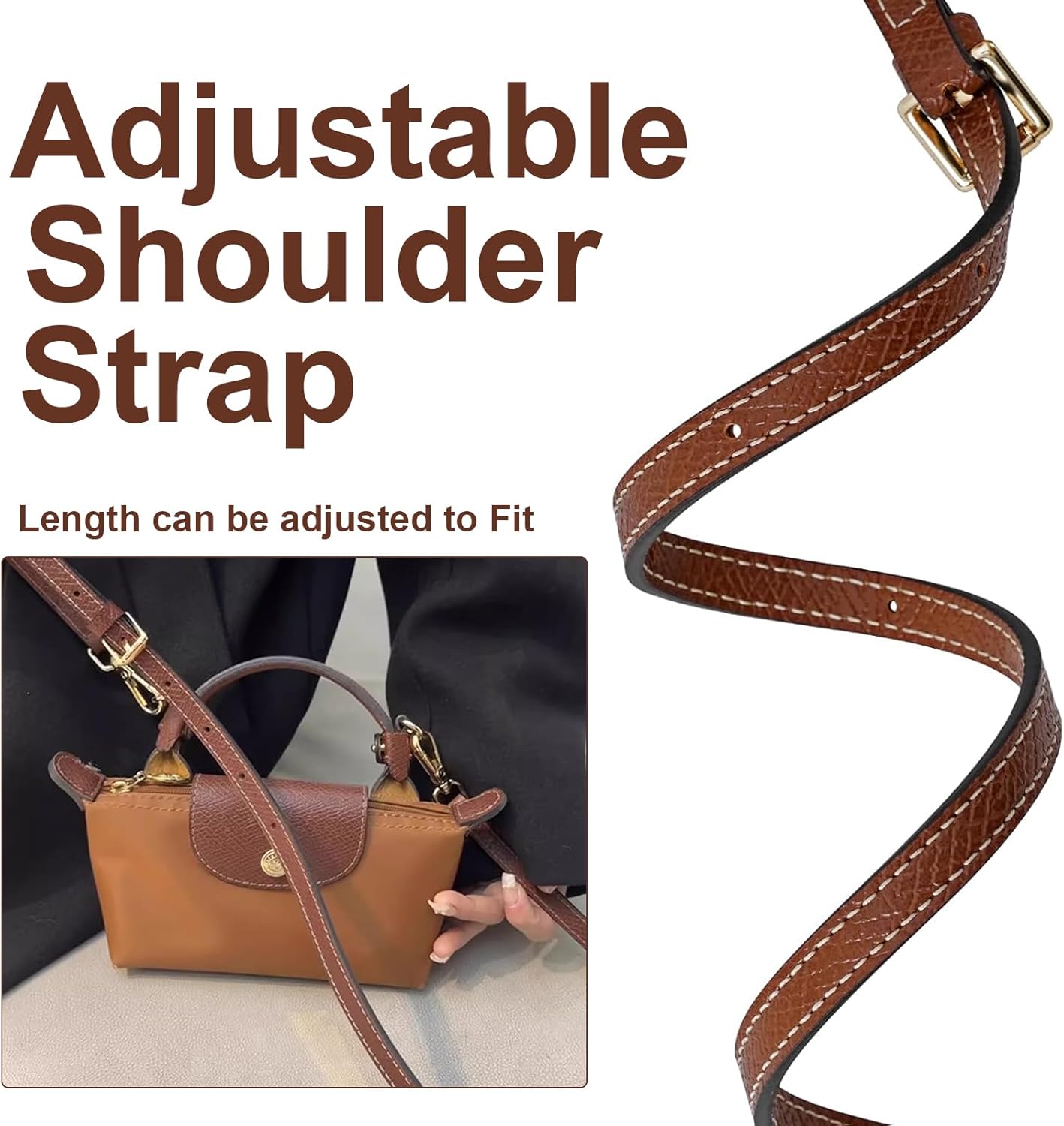 2 キット ミニバッグ レザー ショルダー ストラップとフェルト パース オーガナイザー インサート ロンシャン ミニ XS バッグ用 パンチフリー 調節可能なバックル ストラップ デザイン (ベージュ & ストラップ)
