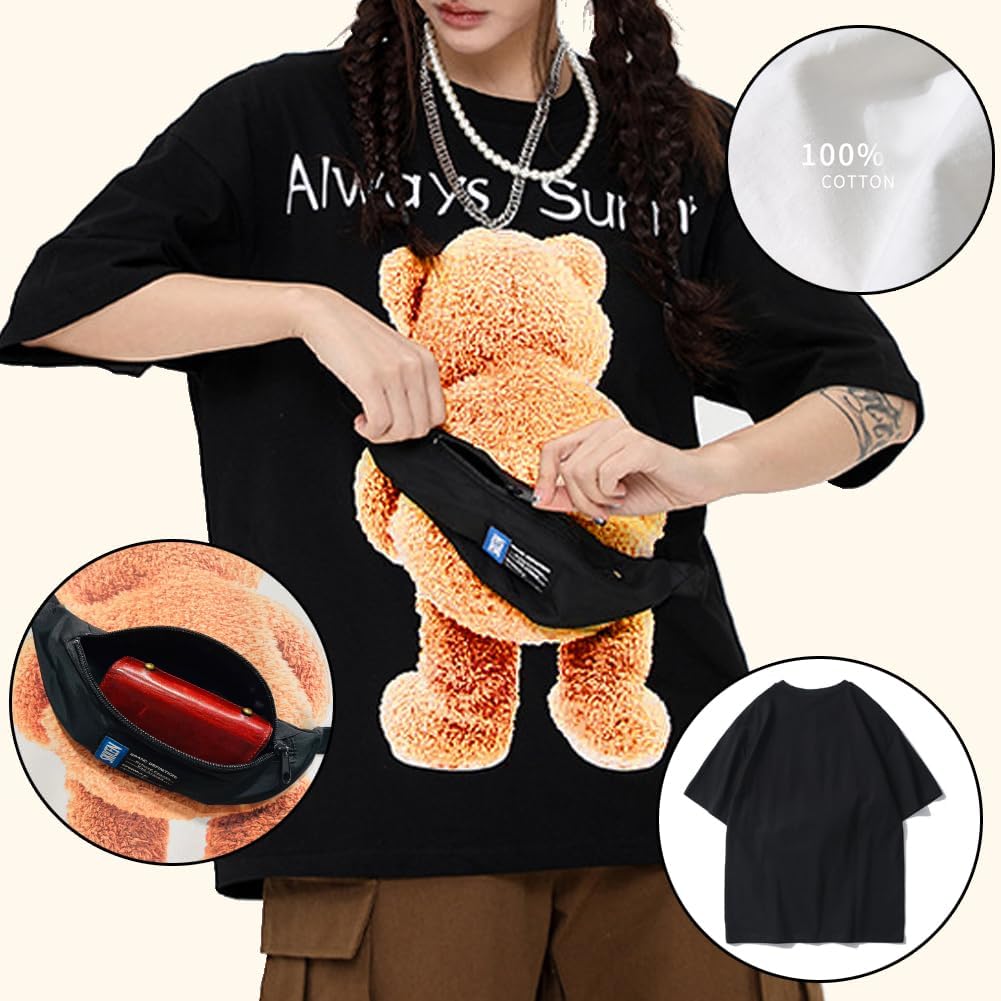 Bearomance T-shirt, Short Sleeve, Bear with Pouch, Pocket, Alternative, Bag, Round Neck, Animal, Fashionable, Cute Pouch Included