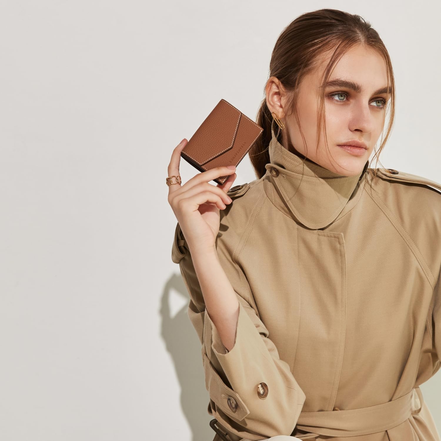 ミニマルな設計:機能設計は、最小のストレージが必要になるように計算されています。外側と内側に異なるバイコラーデザインを備えたコンパクトトリホールドウォレット