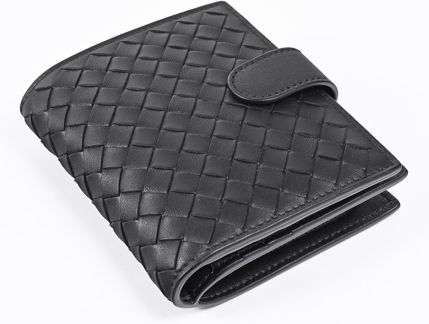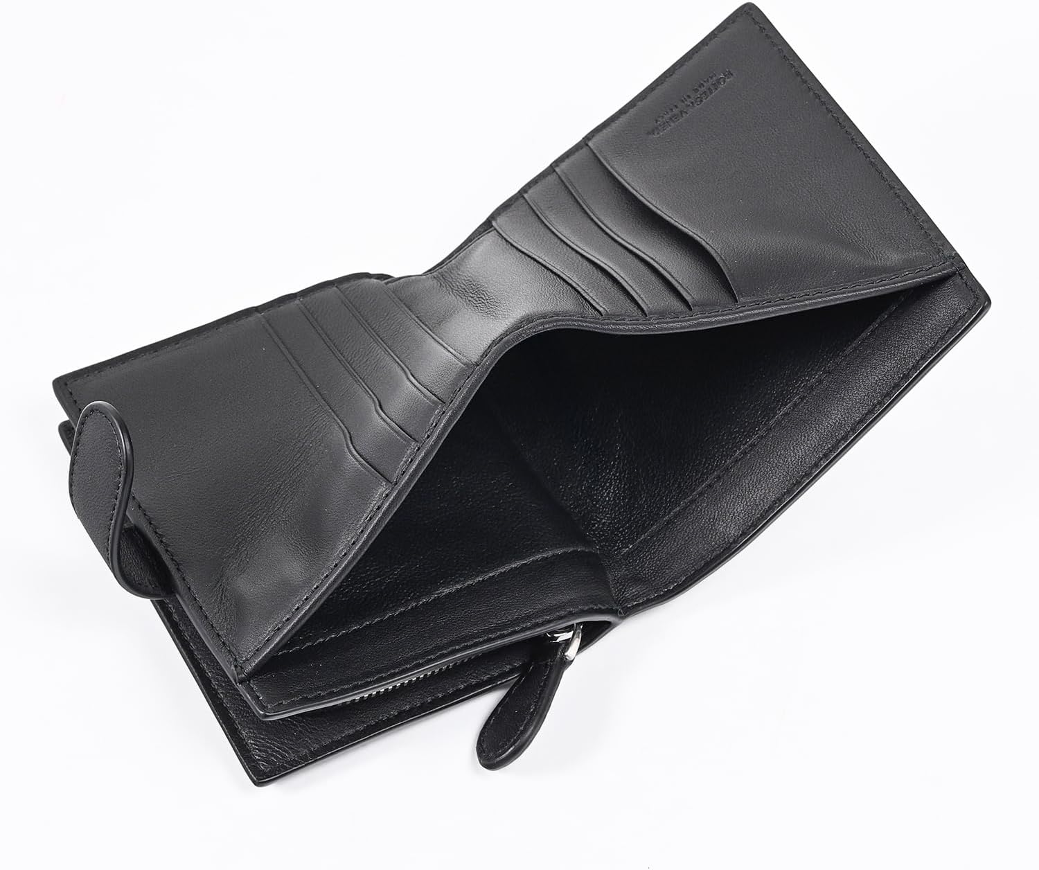 Bottega Veneta 121059 V3UN 8803コイン財布付き双倍の財布イントルケートメンズ、女性、黒、イタリアの財布、革で