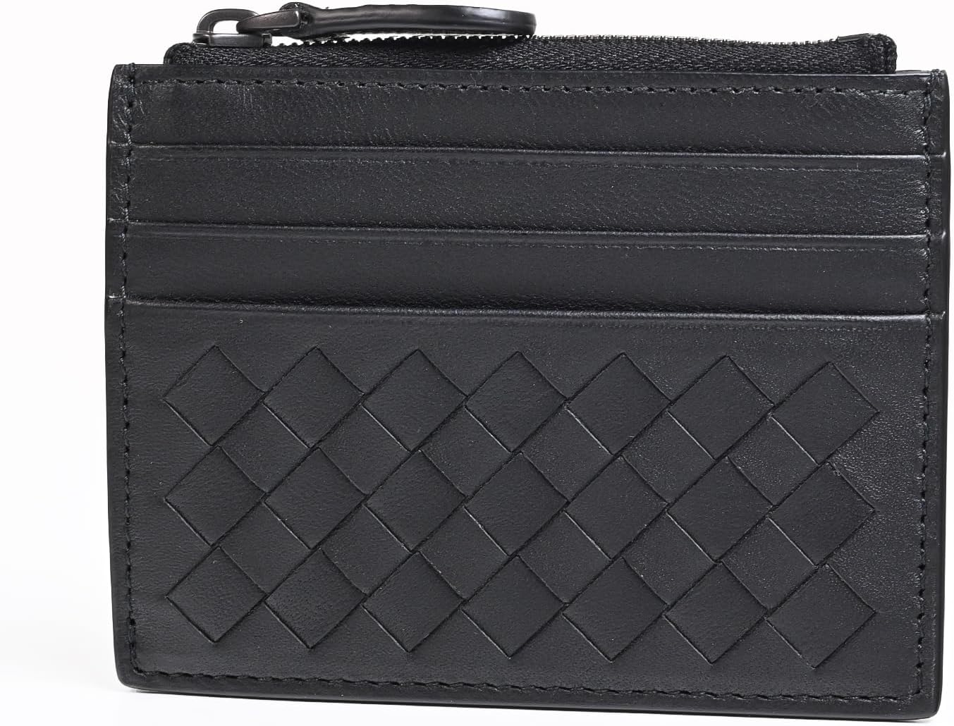 Bottega Veneta 367004 V3UN1 1275ミニウォレットコイン財布、スマートウォレット、カードケース、コインケース、イントレクチャート、ブラック、イタリアの革製革で