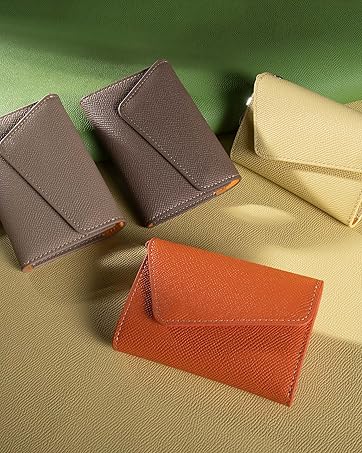 シュリンクカーフレザーと滑らかな手触りのスムースレザーを組み合わせたエレガントなお財布です。現代のライフスタイルにぴったり、大人が好むラグジュアリーなコンパクトかつ機能的な「三つ折り」タイプ