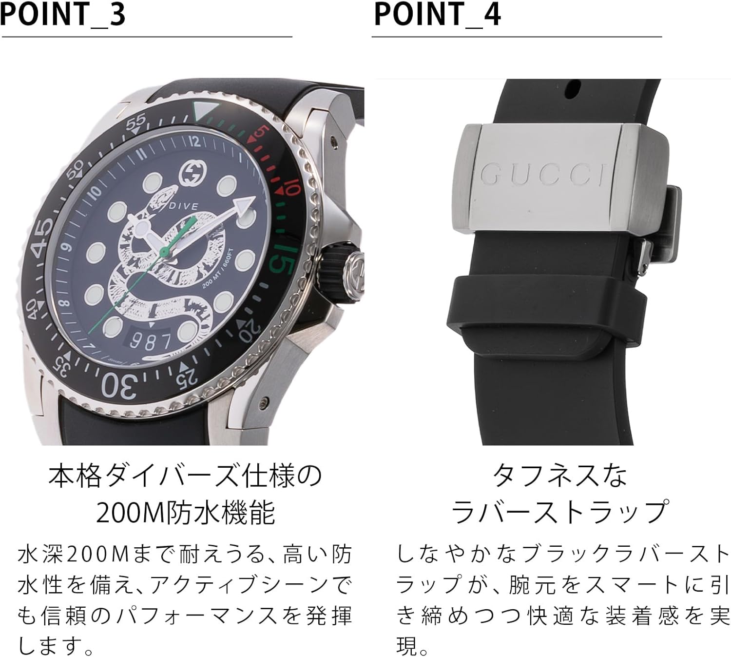 GUCCI メンズ ダイブウォッチ ステンレススチール サファイアクリスタル クォーツ ラバーストラップ YA136217 [Parallel Import]