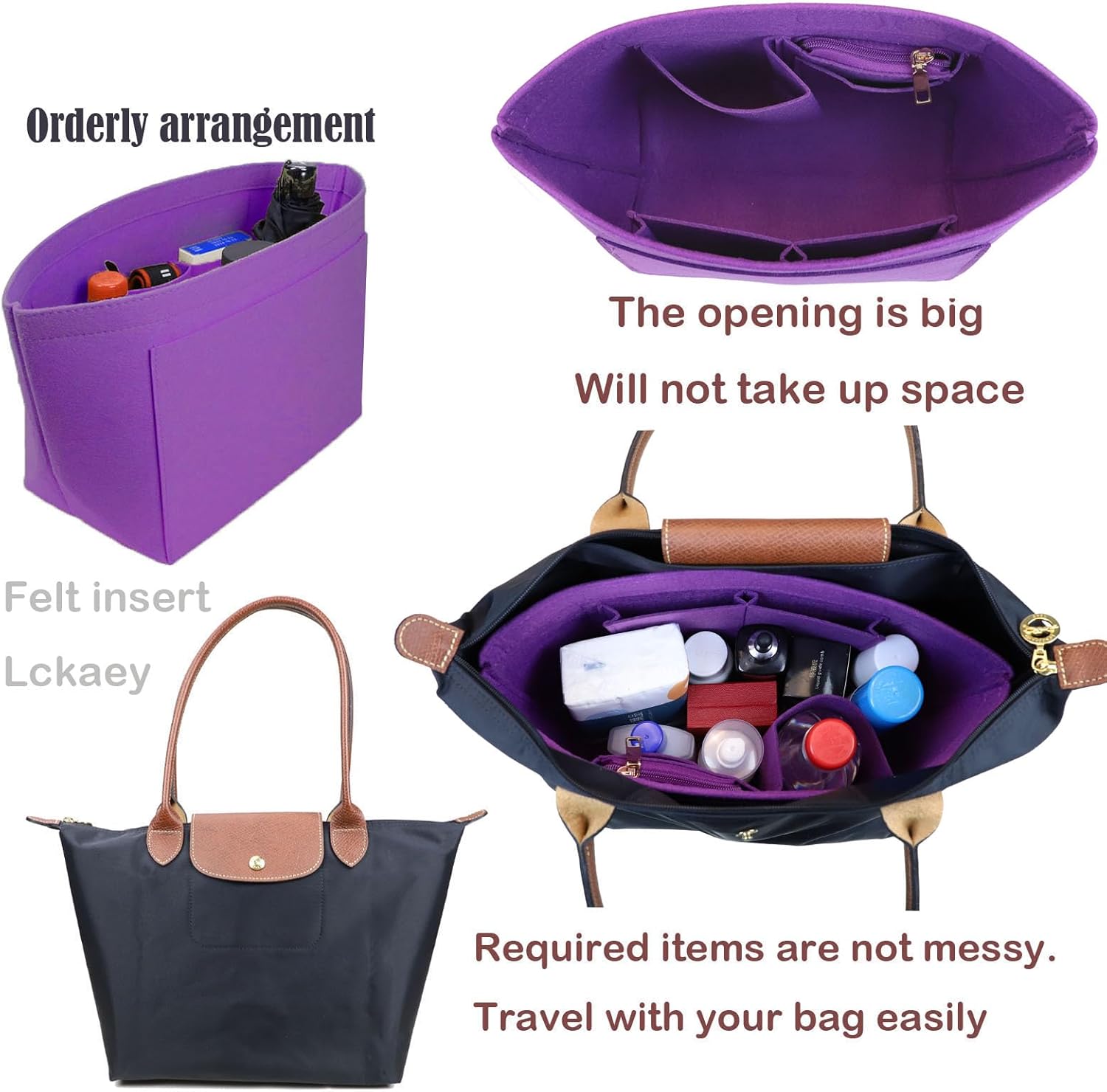 Lckaey バッグ オーガナイザー インサート ロンシャン ルプリアージュ オーガナイザー インサート (大) ハンドバッグ オーガナイザー 1012 パープル-M