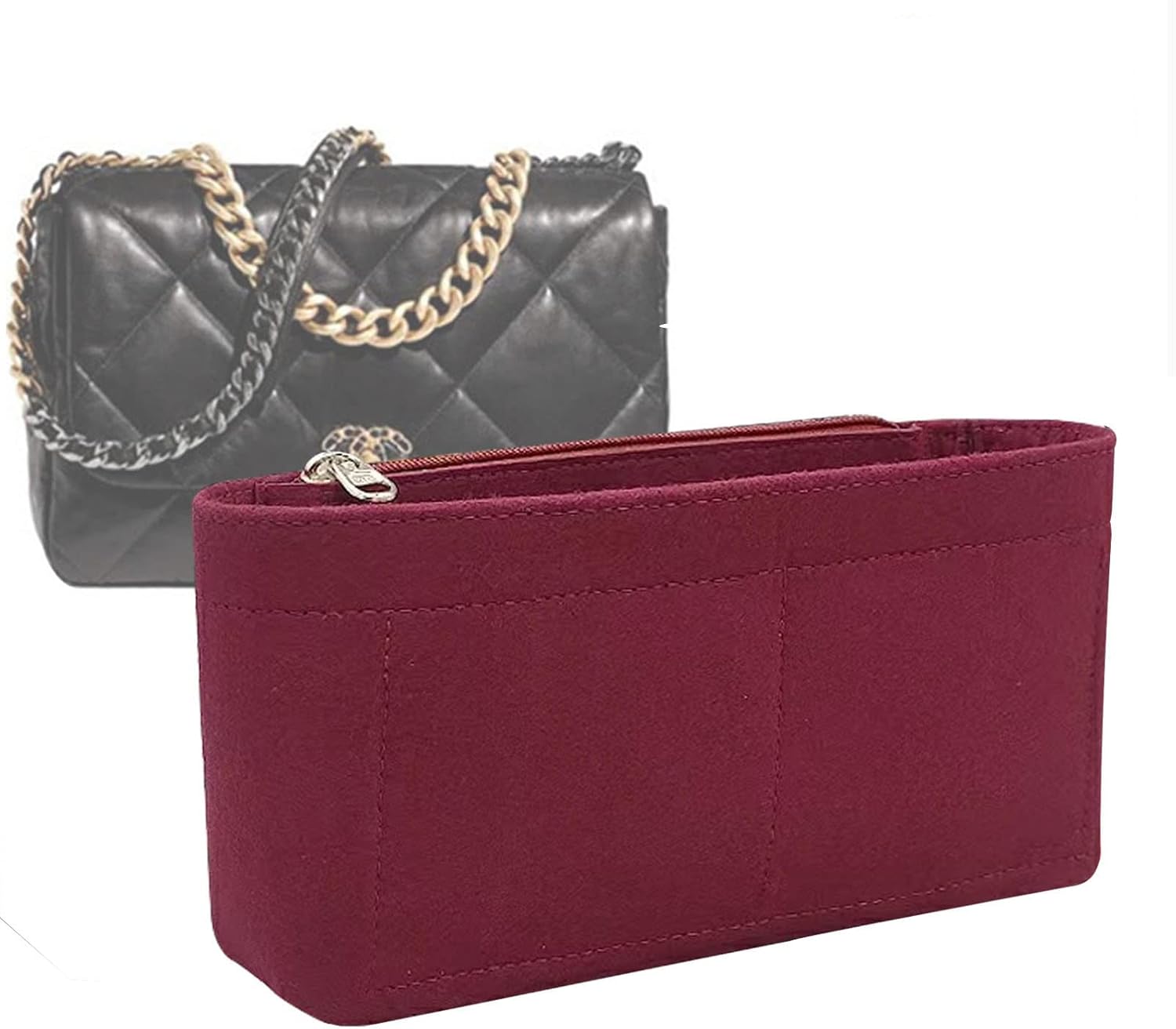 Lckaey 財布 オーガナイザー インサート シャネル19用 サイドジッパーポケット付き スモールバッグ ハンドバッグ シャネル マキシフリップバッグ オーガナイザー Y002claret-S