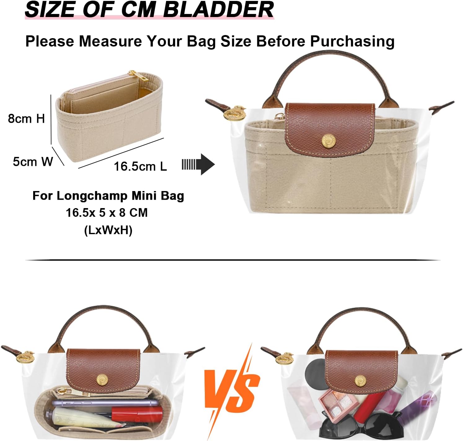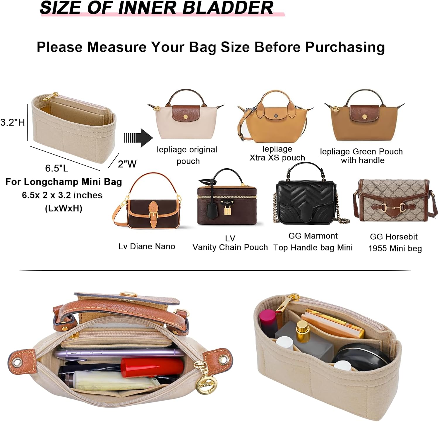 フェルト財布オーガナイザー挿入サイズ – ミニ: 長さ6.5インチ x 幅2インチ x 高さ3.2インチ。ル プリアージュ XS バッグのミニサイズまたは同様のサイズのトート ハンドバッグに適しています。0.5 インチ未満の場合は、適切にフィットします。ご購入前にバッグのサイズをご確認ください。またよろしくお願いします。