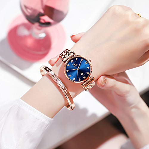 OLEVS OLEVS Women’s Watch, Made in Japan, Quartz, Ultra Thin, Rose Gold, Simple, Stainless Steel, Bracelet, Stylish Watch, Waterproof, 98.4 ft (30 m), Wristlet Set, Popular, Pink Gold, Mother’s Day, Gift for Women, Rose Gold Band + Blue Dial, Bracelet Type