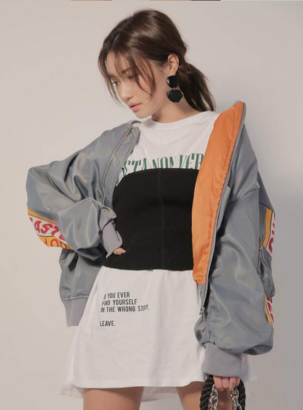 Piiteの女性のアウターウェア、コート、ゆるいフィット感、野球の服、秋と冬、カジュアル、スタイリッシュ、英語の特徴、ジャケット、ダンス服、トップス、スポーツウェア、薄いストリートスタイル、渦中スタイル、