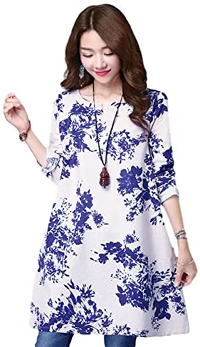 Specification: Sayusayu A-Line Dress, Flower Pattern, Loose-Fitting, Cotton Flax, Short or Long Sleeves