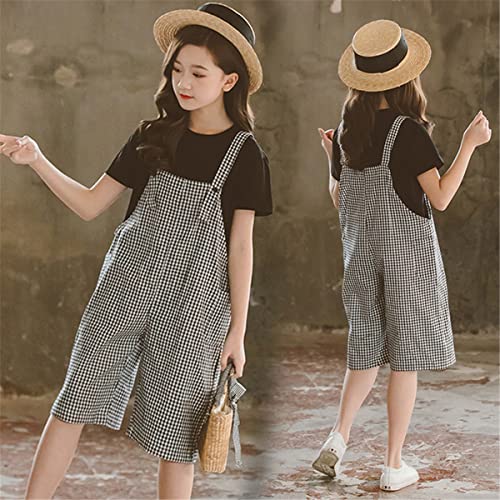 Specification: VIISEN Children’s Clothes, Girls, 2-Piece Set, Suit Cami, Dress, Short Sleeve, T-shirt, Checkered, Suspender Pants, Daily Use, Casual, School, Elementary School, Clothes, School Style, Daily Wear, Travel, Summer, 39.4 – 63.0 inches (100 – 160 cm)